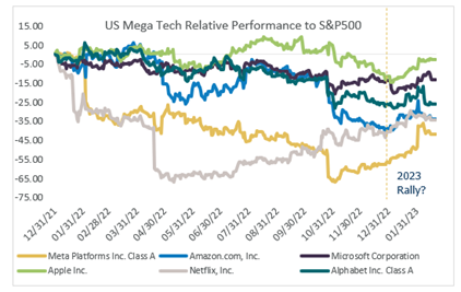 The January US Mega tech stock, or so called “FAANGMAN” (Facebook, Alphabet, Amazon, Apple, Netflix, Google etc), rally started to fade throughout the recent reporting season, with many reporting disappointing quarterly results and/or softer guidance for 2023.