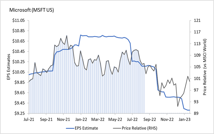 We exited our position in MSFT in September ’22 as evidence continued to build of a deceleration in Azure and Windows.   Alphinity conducted a 2-week US research trip during July 2022, where meetings with cloud players and semiconductor companies validated the thesis of weakening cloud consumption and PC markets.