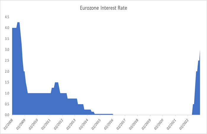 If we cast our minds back to the beginning of 2022, the outlook for Europe was particularly gloomy.   The Russian/Ukraine war added extra fuel to the supply chain constraints and slowing growth fires.  Recent economic data points from manufacturing, to inflation, employment and business activity are all coming through better than feared.  Raising hopes that the ECB may be able to hike rates less aggressively and Europe can avoid a recession.