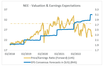 NEE – Now well below LT valuation & Offering strong EPS growth