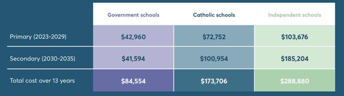 You can access the total Cost of Schooling in Australia report here.