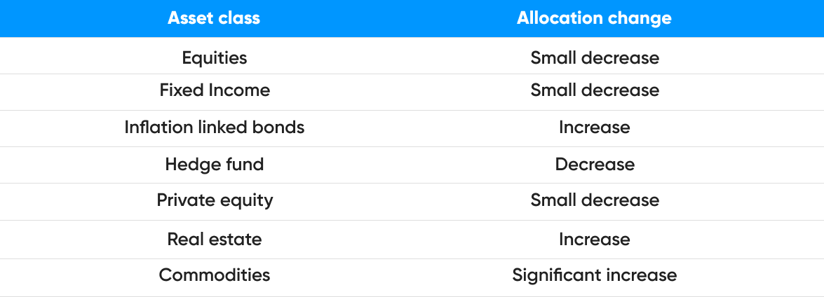 Table 1: Illustrative portfolio changes when moving to high inflation/low growth regime