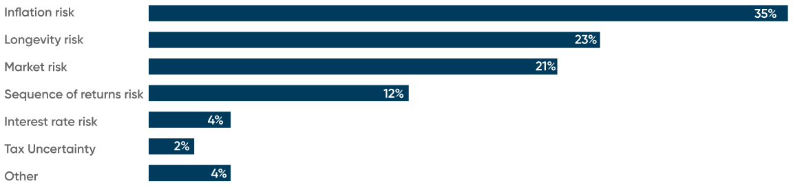 Financial advisers understand this and now rate inflation as the biggest risk to their clients’ retirement outcomes, substantially ahead of longevity and market risk.3